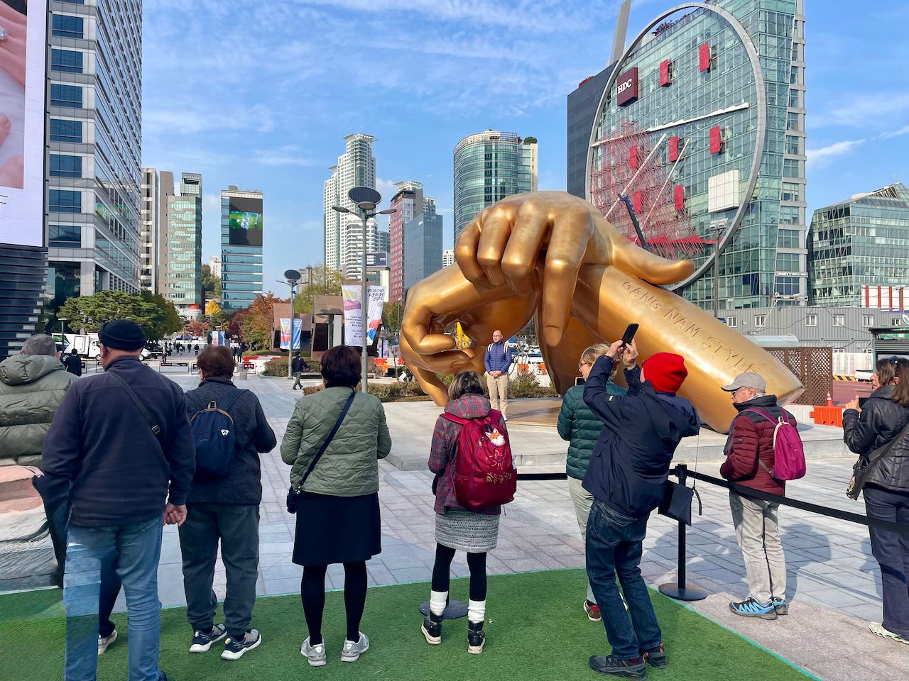 But there were surprises to come for us every day of the trip. Thanks to the massive success of “Gangnam Style” a decade or so back (scarily my fact-checking says the song was released in 2012, what?!), many people would have this fun spot on their itinerary, but we walked into it quite accidentally as we wandered between the lovely Bongeunsa Temple and the Starfield Library, and it was kind of funny to see a tour group all lined up taking it in turns to have their picture taken with the “Gangnam hands”.